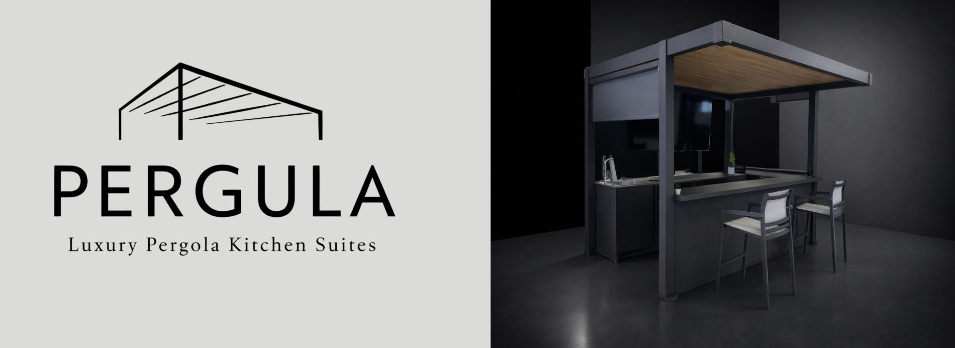 Meet the Pergula Lumina Kitchen Suite. A stylish aluminium pergola with a louvred roof, integrated sink cabinet and bar counter, designed to upgrade your garden into a social space you will actually use.