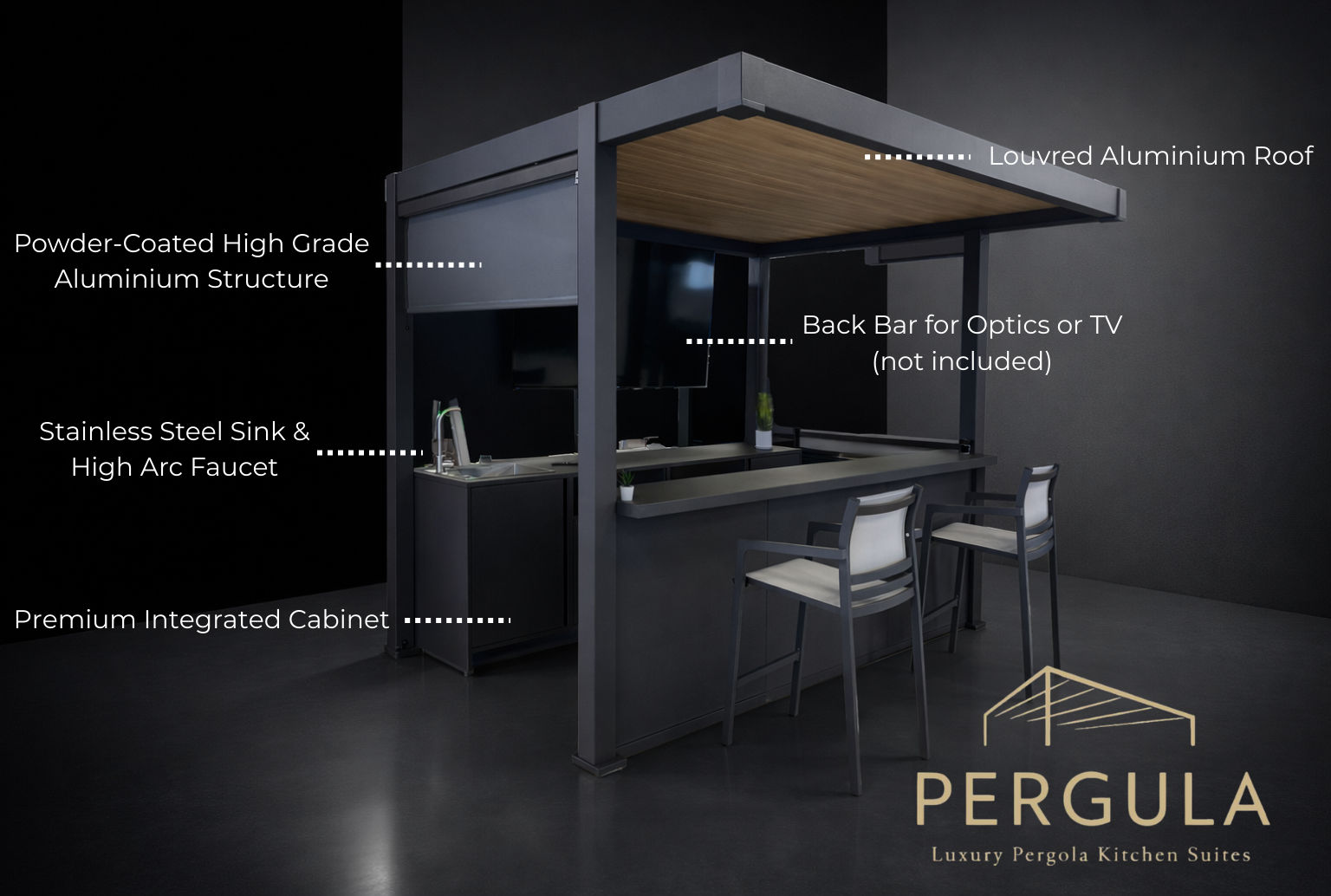 A pergola kitchen suite is a combined outdoor structure and preparation space designed to function as a single, cohesive installation. Unlike standalone bar units or freestanding pergolas, a kitchen suite integrates shelter and utility.